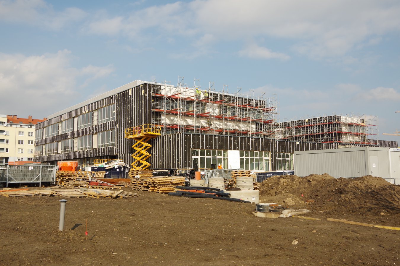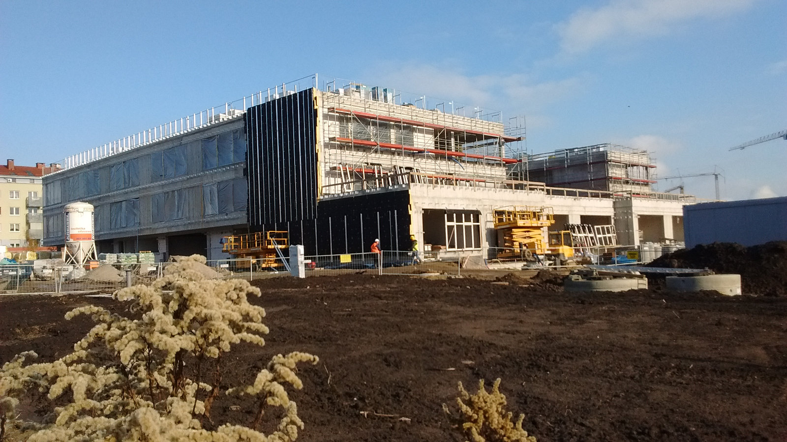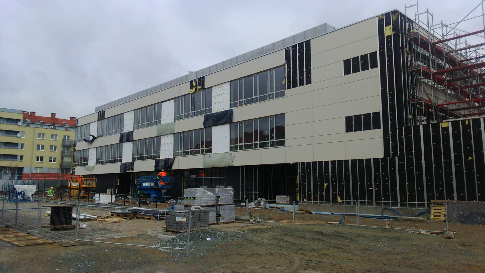 Budowa Zespołu Szkolno - Przedszkolnego przy ul. Kłodzkiej we Wrocławiu coraz bardziej zbliża się ku końcowi. Obecnie prowadzone są prace elewacyjne oraz wykończeniowe wnętrz. Szkoła coraz bardziej przypomina tę z wizualizacji :)